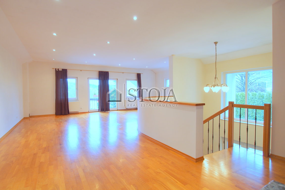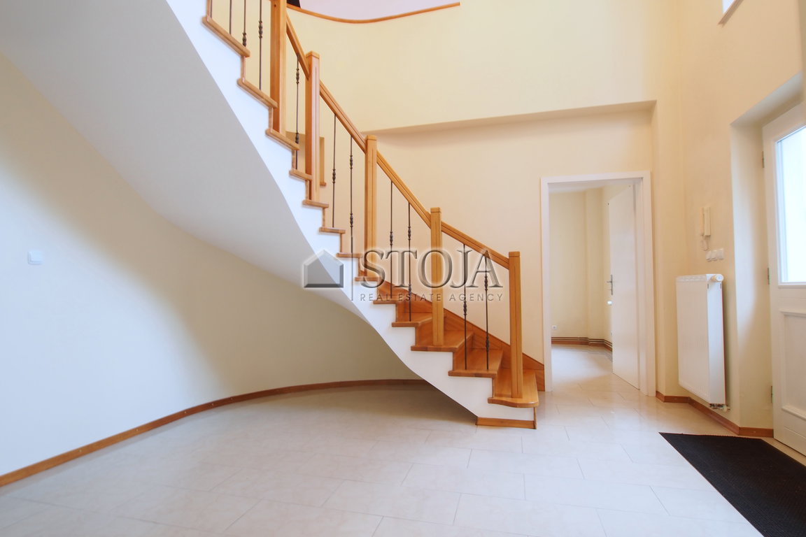 The property is situated on a plot of 678 m² and is designed with comfortable living in mind for larger and smaller families, as well as the needs of businesspeople, diplomats, or retirees. The layout of the house allows for a separate quiet activity on the ground floor, while the living spaces are mostly on the first floor, which also has access to a terrace.