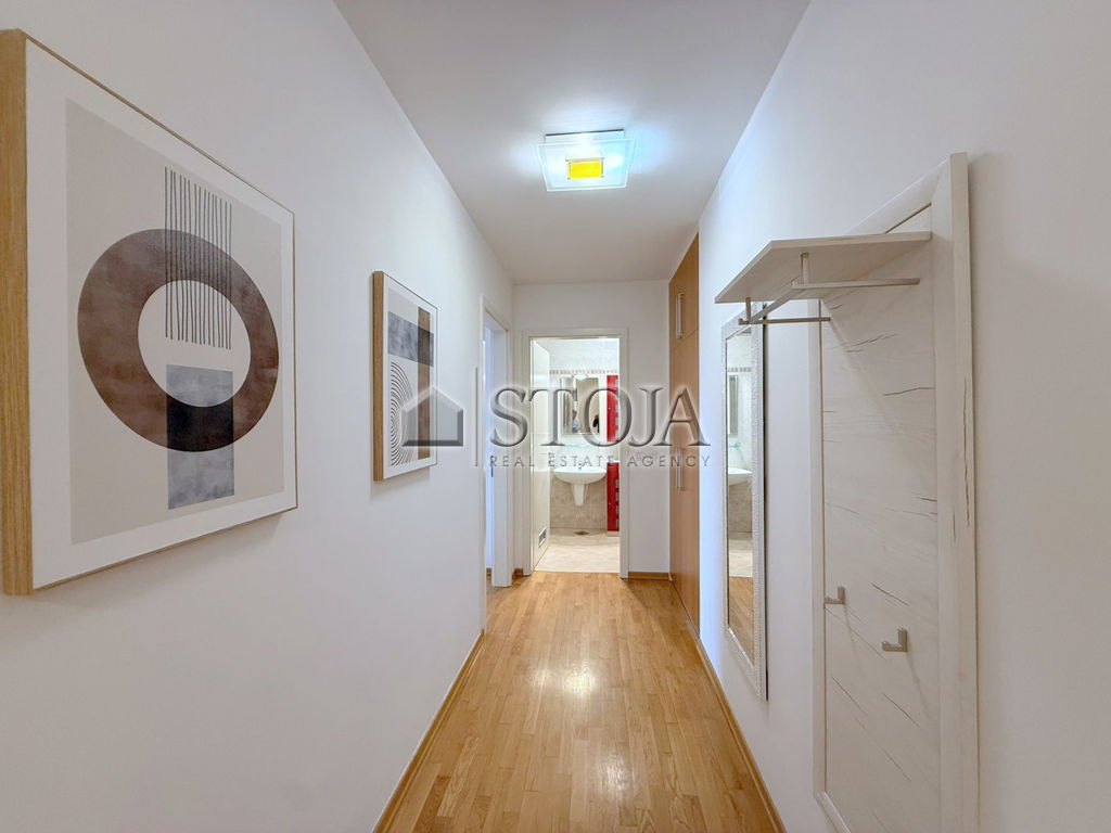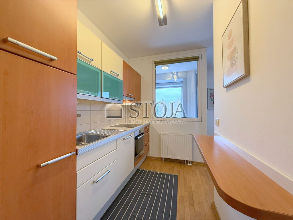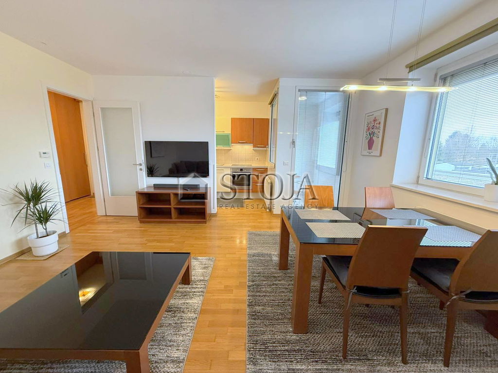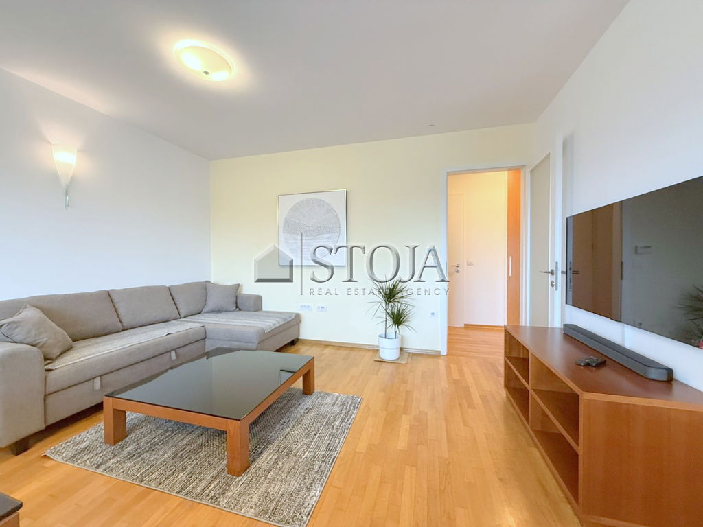 In an excellent location in Trnovo, we offer a bright, modern furnished 2-room apartment with an open view and a parking space in the garage.