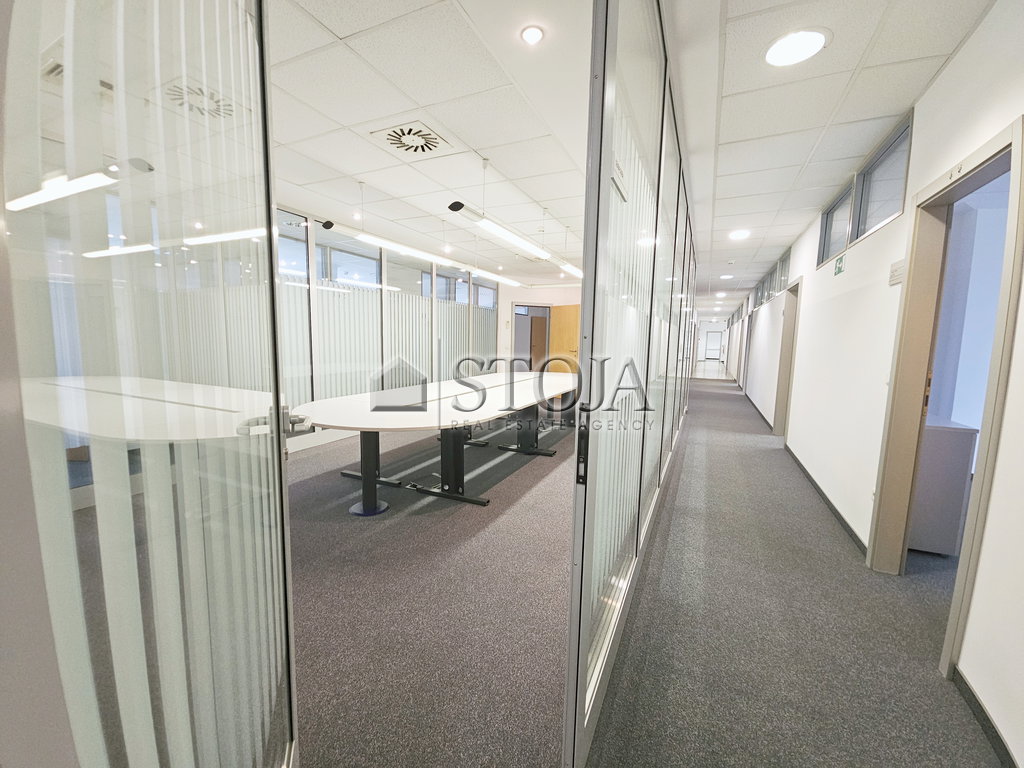 The premises occupy an entire floor and are arranged into several smaller and some larger offices, as well as meeting rooms, a kitchenette, and private restrooms. The building's construction allows for combining offices into larger spaces, and due to two entrances, it also allows separation into two separate and enclosed units of smaller areas (approx. 300 m2).