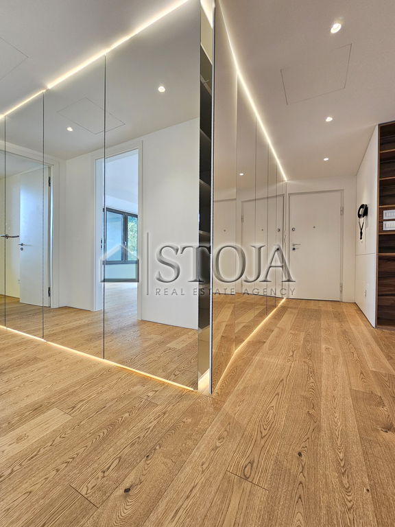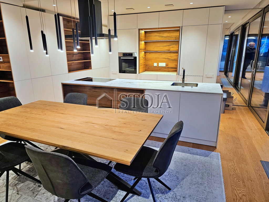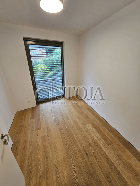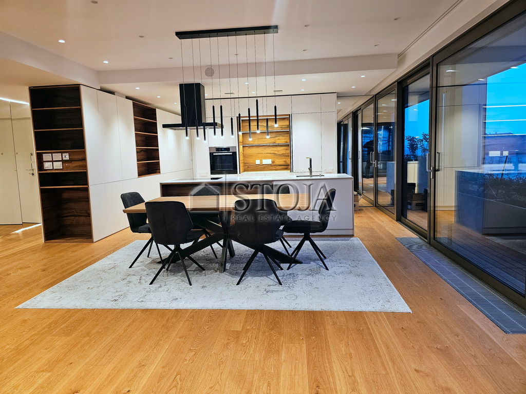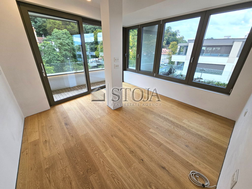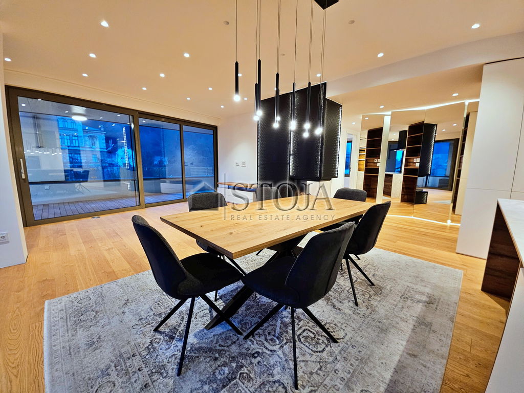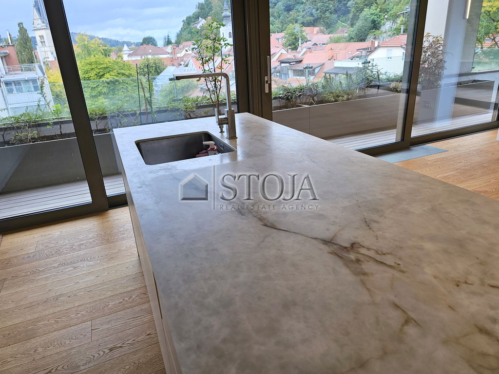 The apartment is located at the top of a newer building, with a fantastic location and a view of Ljubljana Castle.