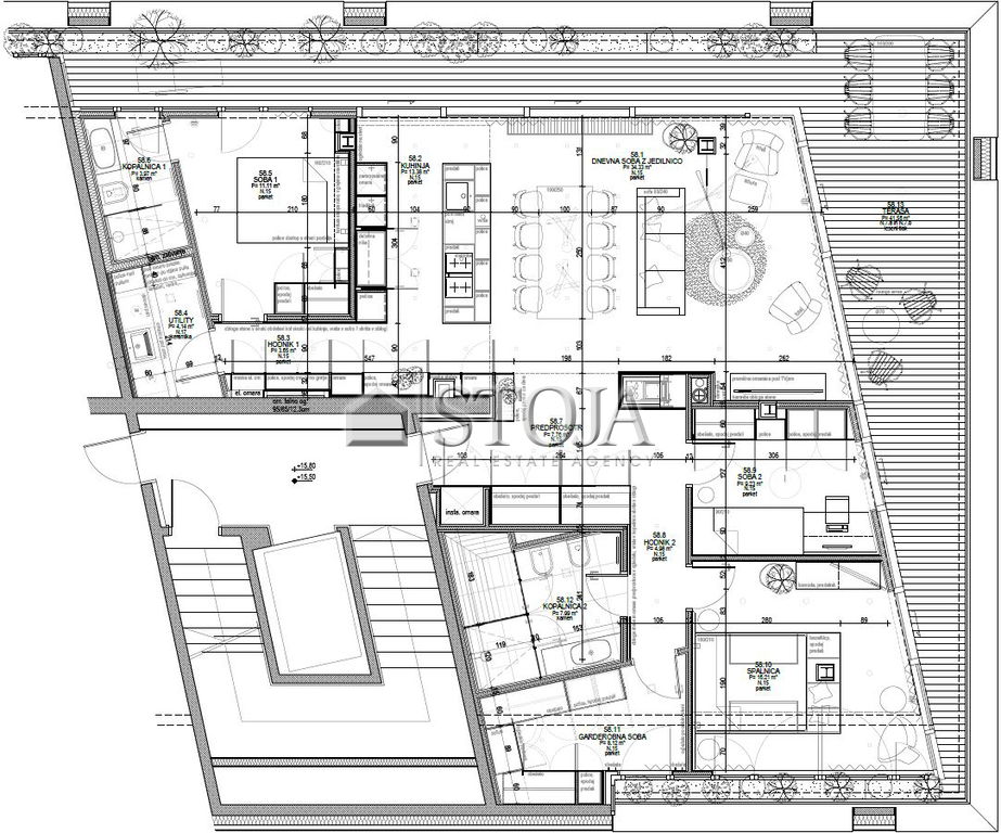 The apartment is partially furnished (kitchen, pantry, utility room, and some built-in wardrobes), as well as sanitary facilities.