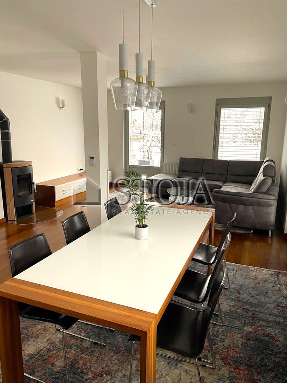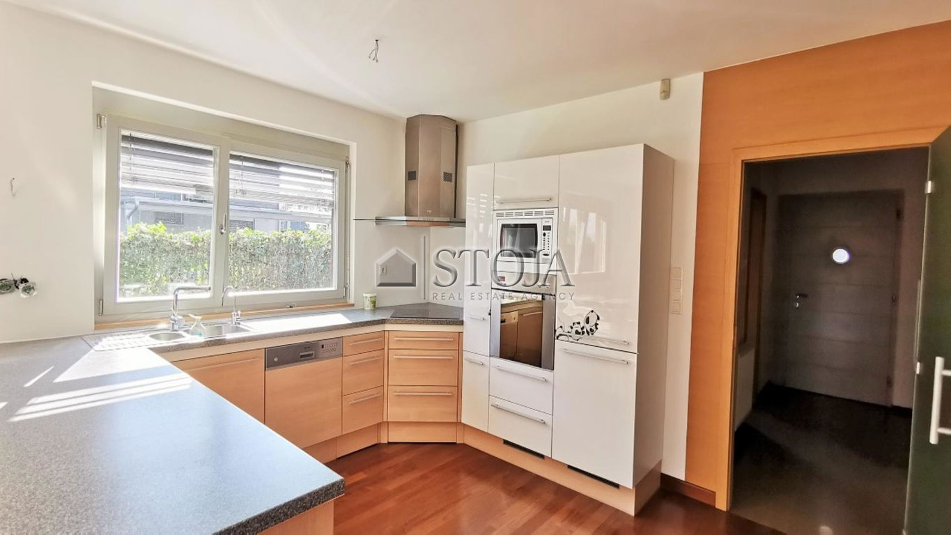 Beautifully maintained, quality-built, and partially furnished house is located in an extremely interesting and desirable location. It is situated in a quiet neighborhood surrounded by greenery, with a garden offering a wonderful view of the countryside, providing a sense of privacy and relaxation.