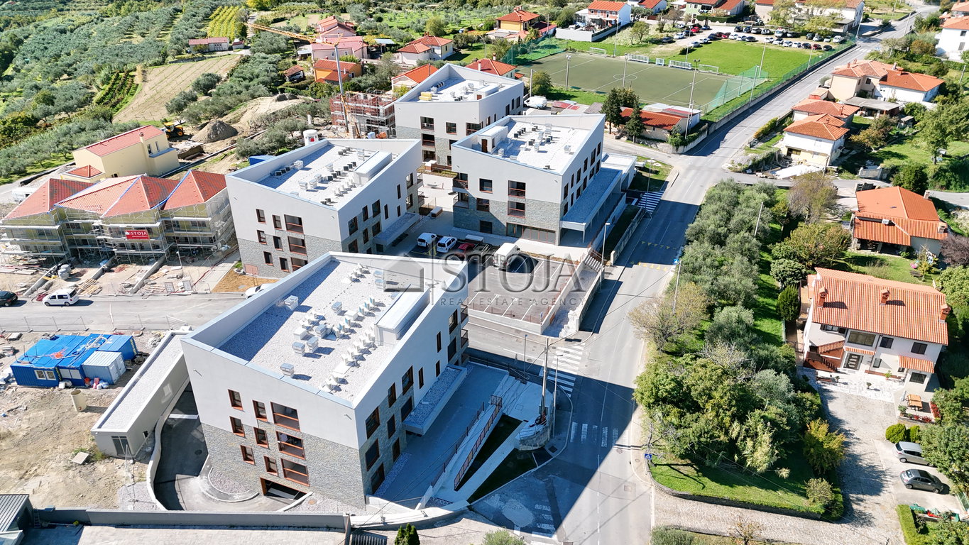 Residences and Villas Murva is a fairytale and idyllic settlement that offers everything you desire with elegant living far from city noise. Its design follows the local, timeless, indigenous coastal architecture, using natural materials that ensure quality and comfortable living. The settlement includes 44 apartments with elevators and parking spaces in the garage within four independent villa blocks, 16 luxury houses with private pools, and 4 commercial spaces on the ground floor.