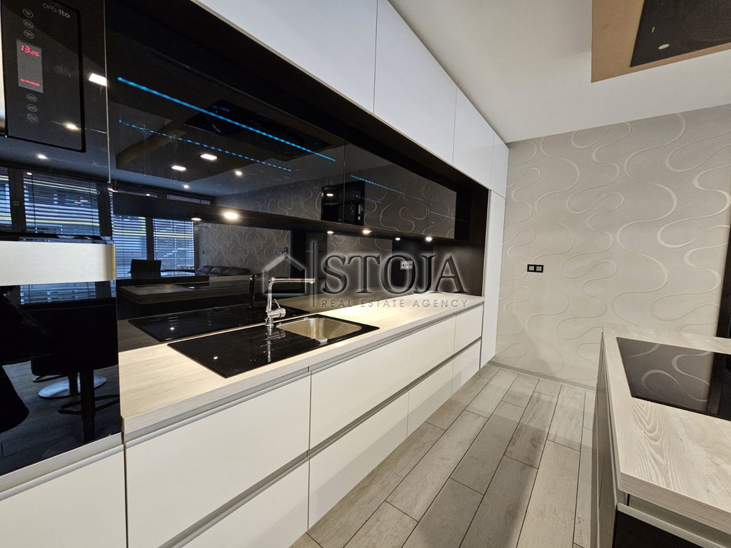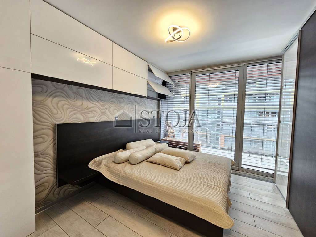 In an excellent location, opposite Aleja and in close proximity to Tivoli Landscape Park, Rožnik, and Šiška Hill, we offer a spacious, luxuriously furnished 3-room apartment on the 6th floor of a modern, well-maintained building with two elevators. The apartment is designed for comfortable and elegant living, including a cellar, two private parking spaces in the underground garage, and numerous additional advantages.