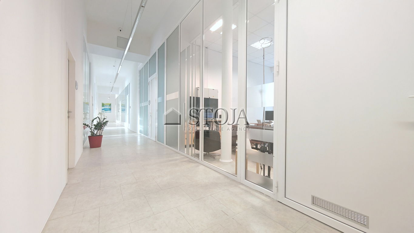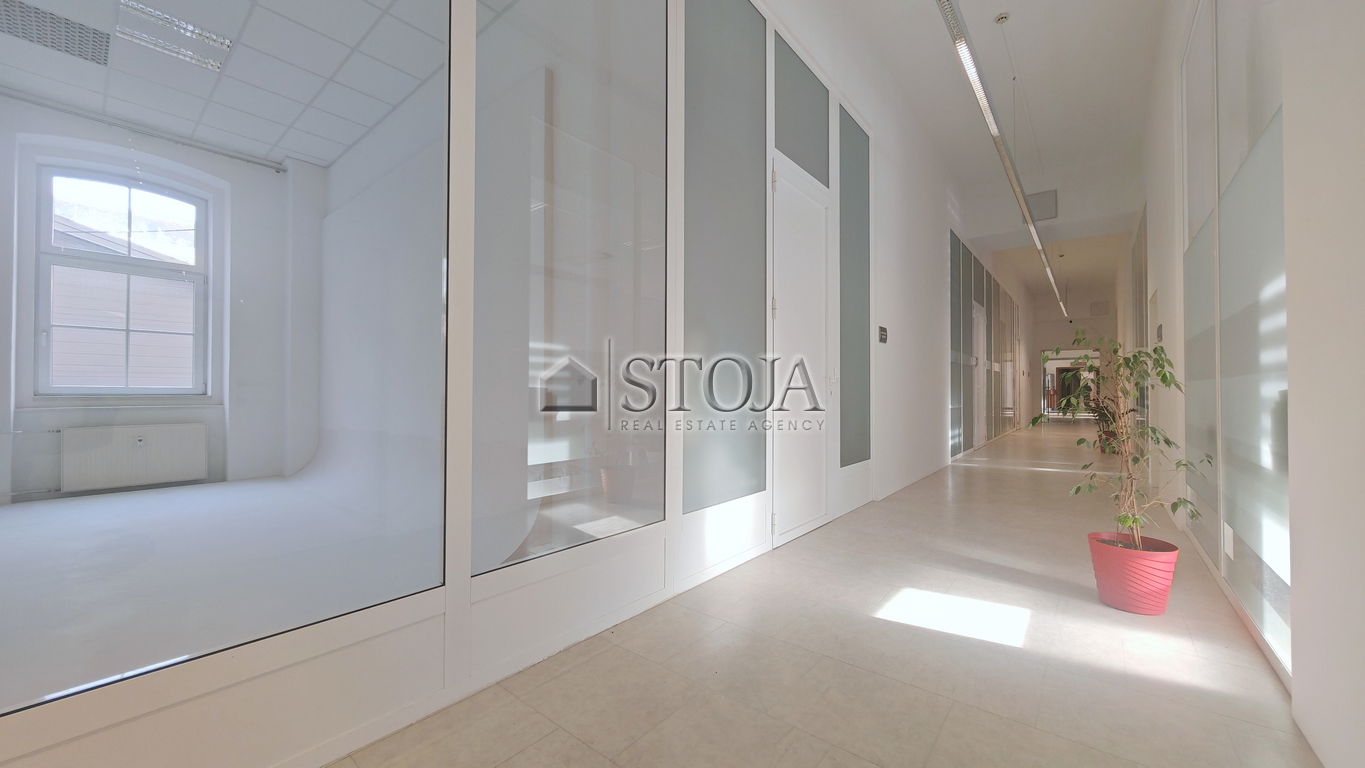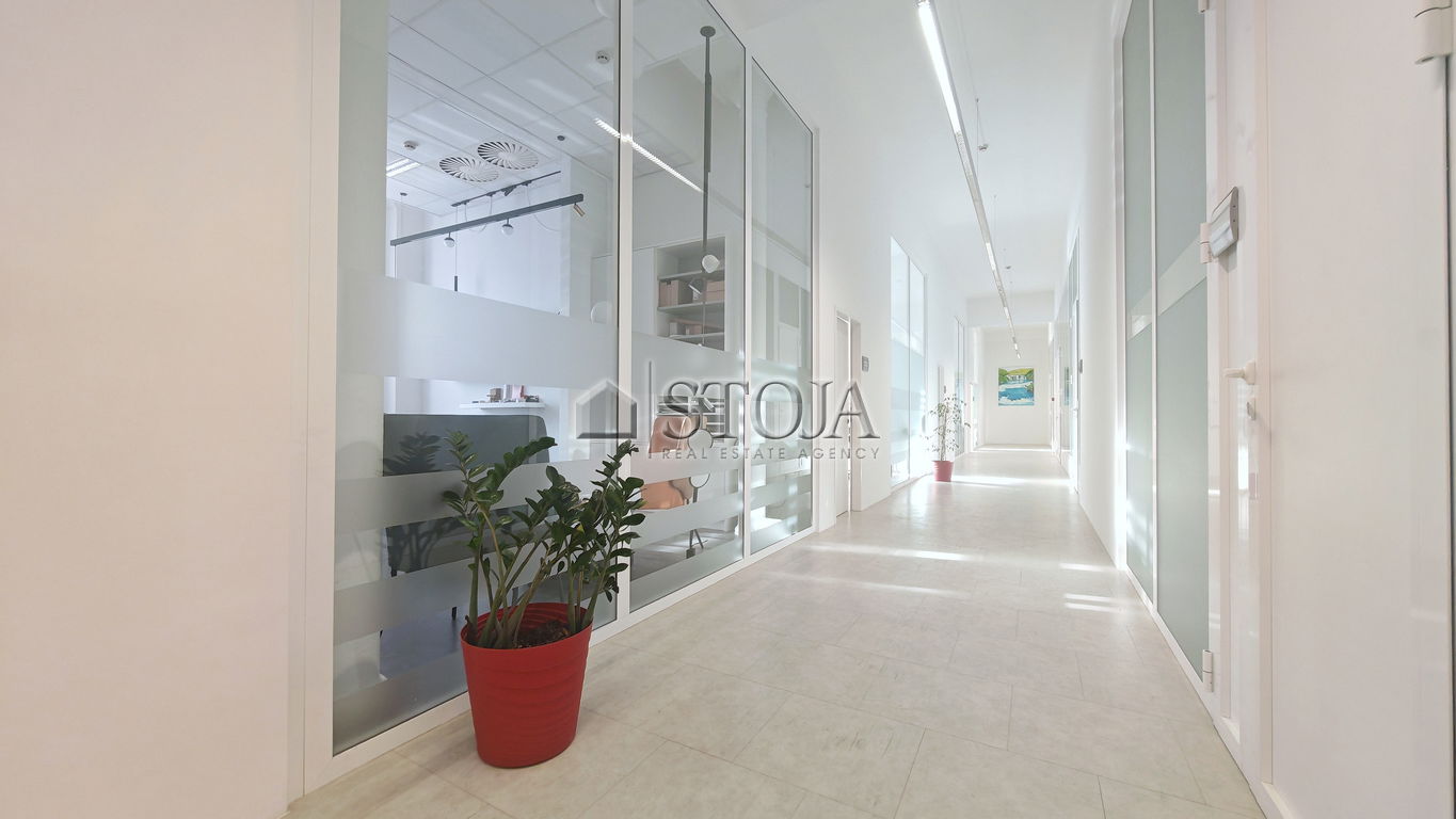 The layout includes 10 separate office spaces of various sizes (from 17-87 m2) and shared use of sanitary facilities. 5 offices also have water connections, making it easy to arrange a private kitchenette.