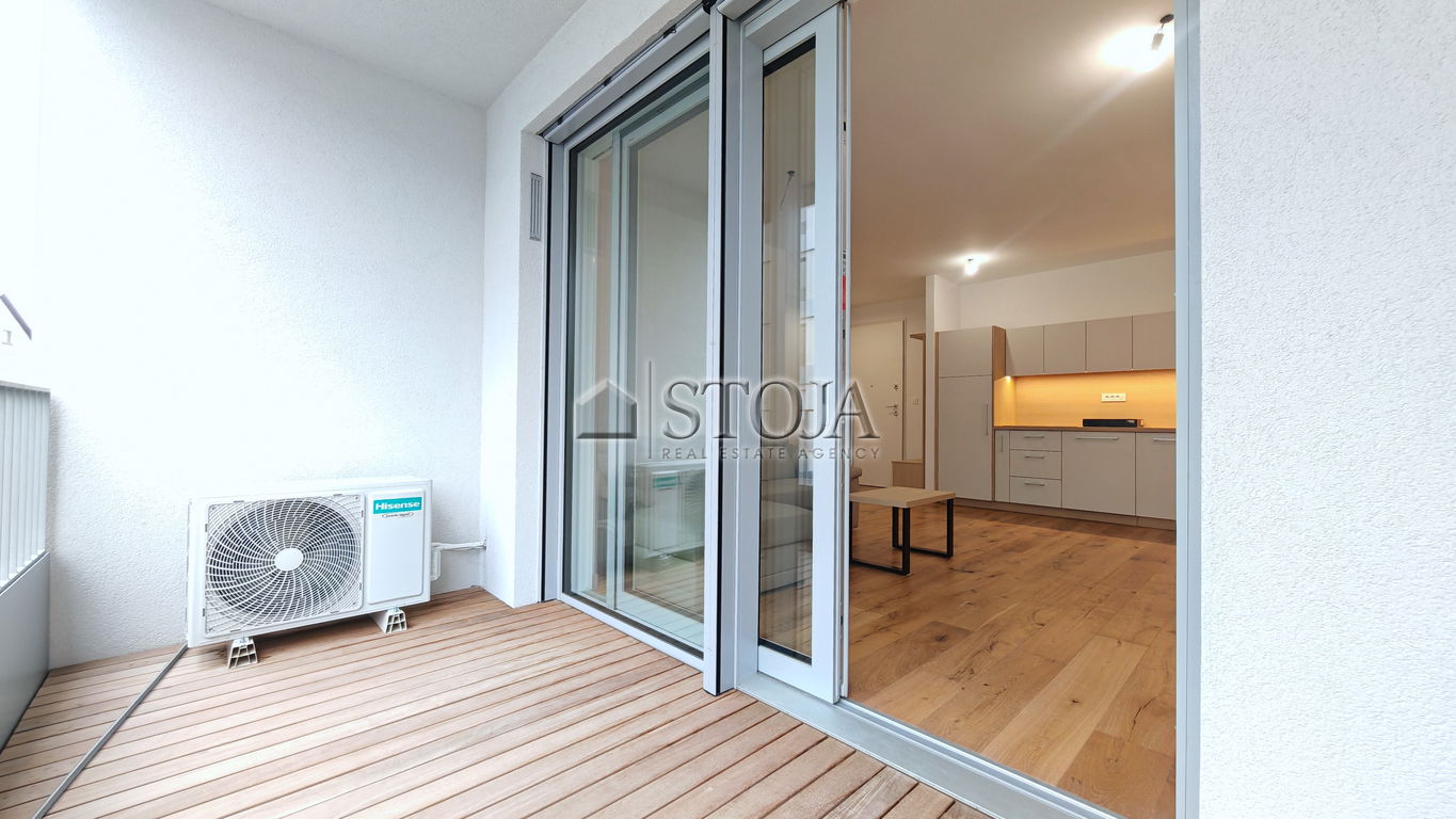 For rent a brand new and still unoccupied apartment in a low-energy building with pedestrian access to the city center (net 58.7 m2).
