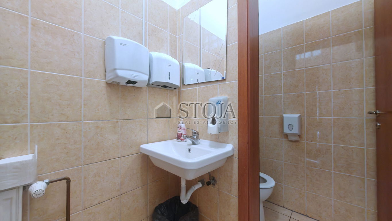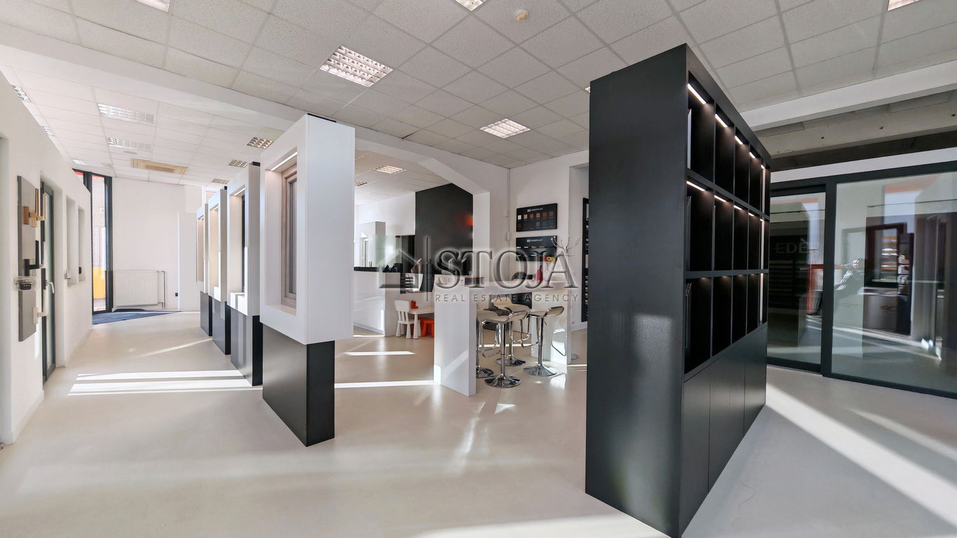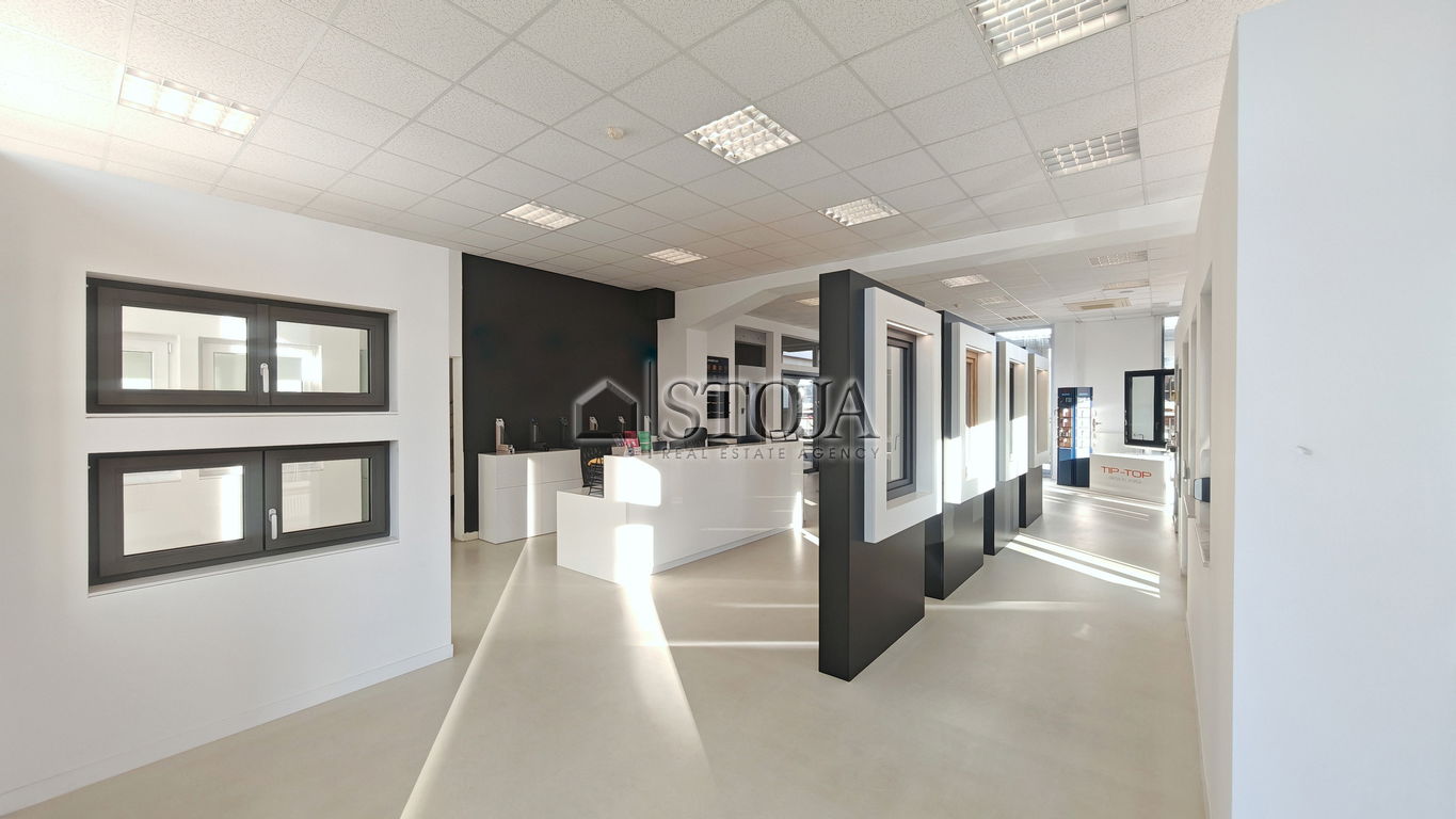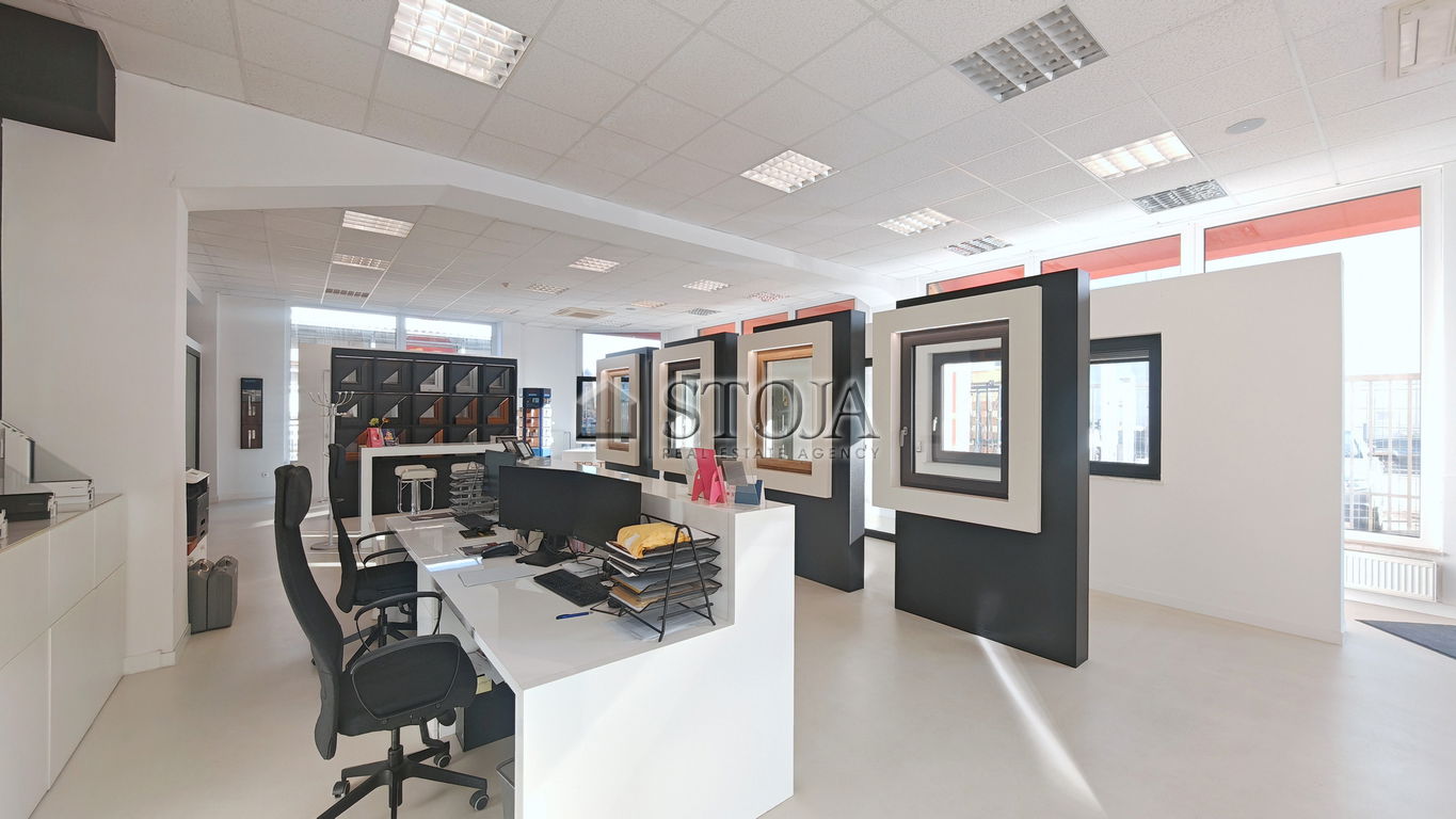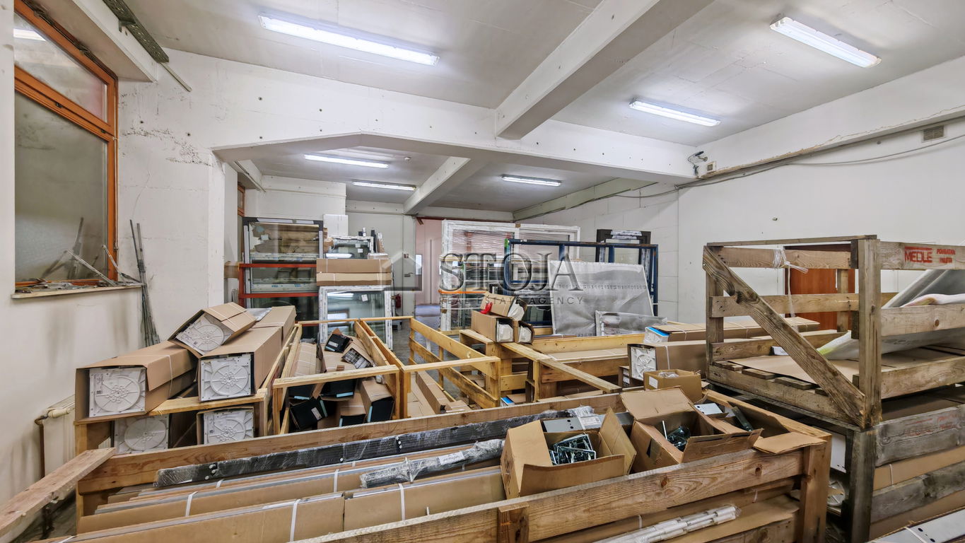 The functional layout of the ground floor at the front includes a larger showroom with a ceiling height of approximately 3.5 m and sanitary facilities. At the rear of the ground floor, there is approximately 130 m2 of masonry warehouse and approximately 130 m2 of prefabricated warehouse (a total of approximately 260 m2) with a ceiling height of about 4 m and roller doors measuring 3.4 m x 3.4 m.
