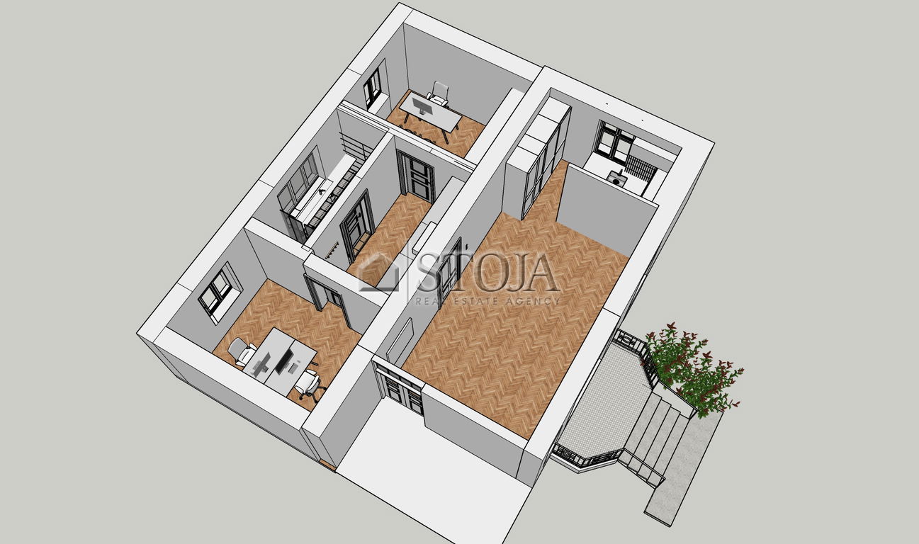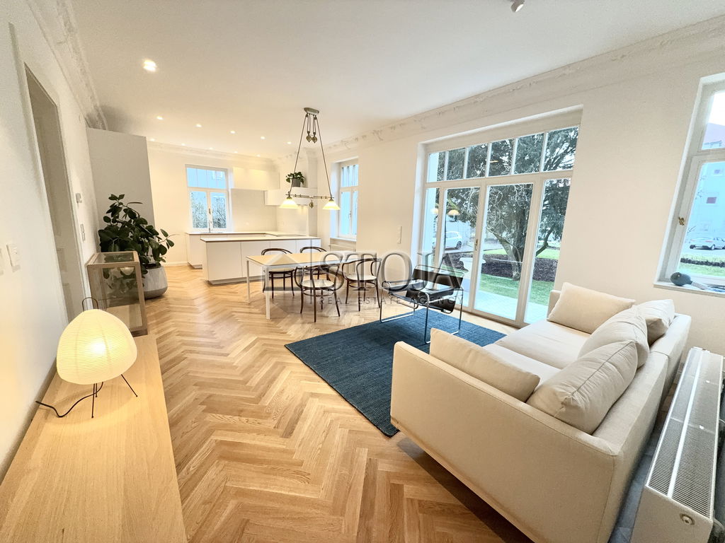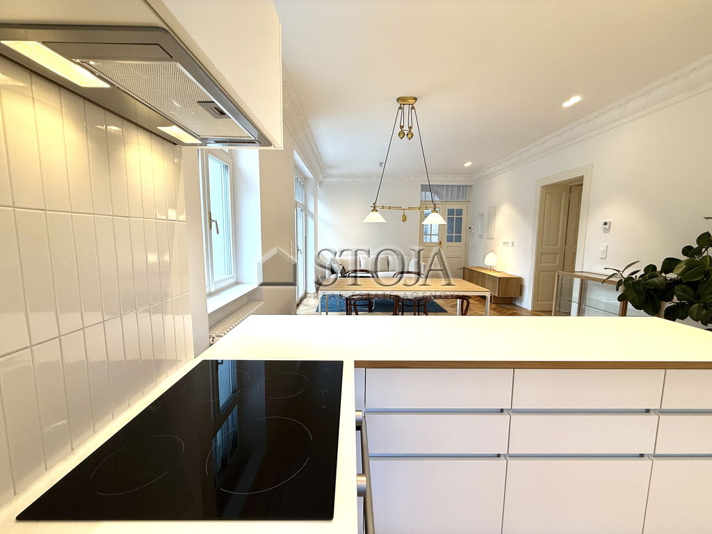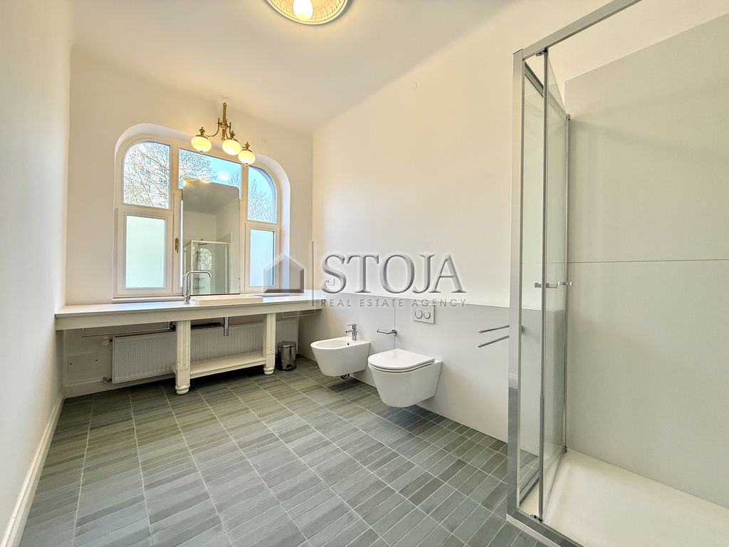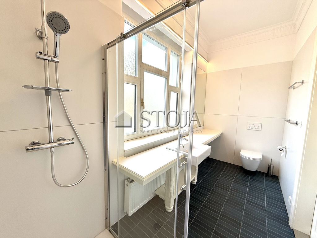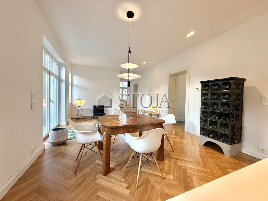 We offer a beautifully renovated townhouse that combines the elegance of classic architecture with modern functionality. The house is arranged over three floors (ground floor, first floor, and attic) and also includes basement spaces. It is suitable for residential or commercial use (offices, clinics, showrooms, etc.).