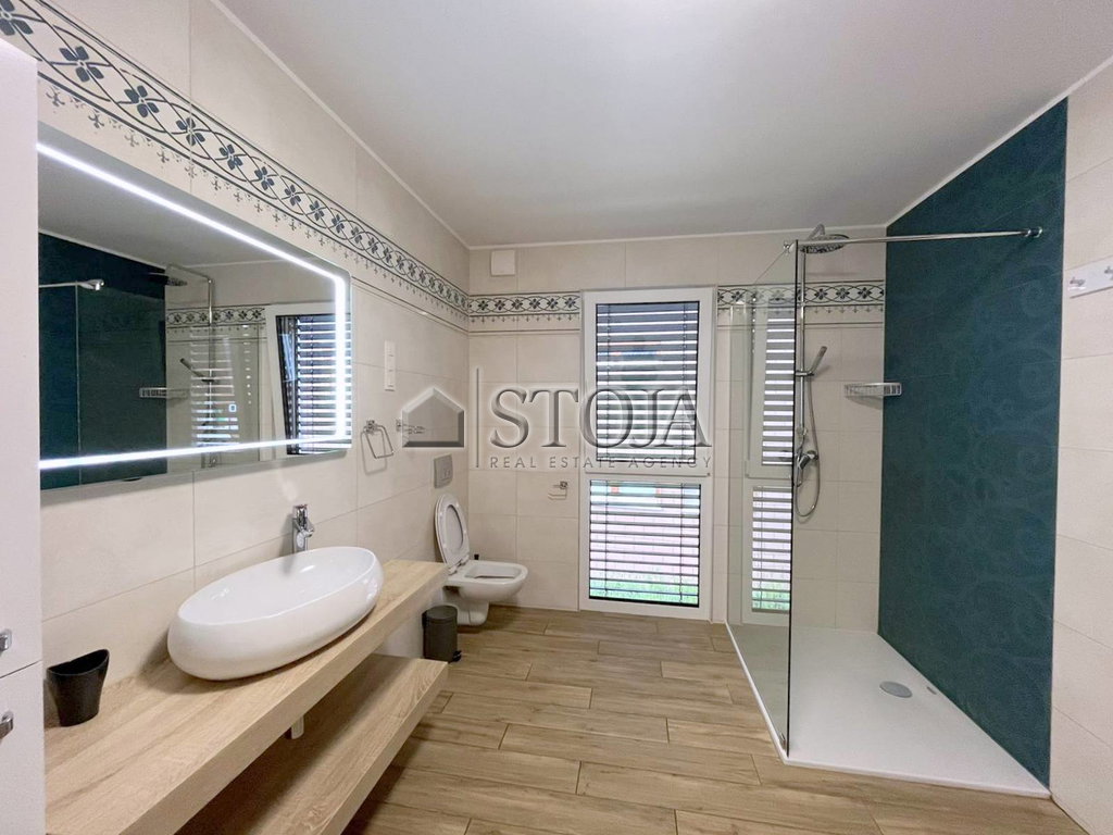The house is very spacious, bright, and designed with large glass surfaces. It is arranged on two floors.