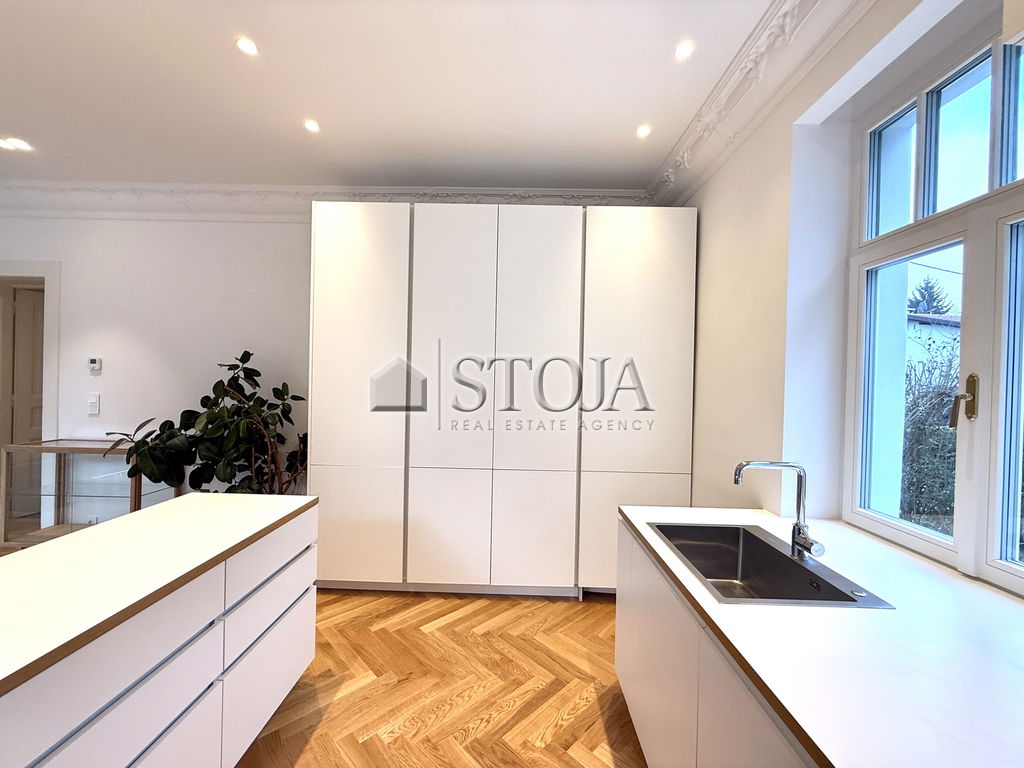 We offer for rent a completely renovated house from 1920 with three floors and a basement, suitable for comfortable living or business use. The layout and equipment can be adapted to the tenant’s lifestyle or activity for long-term rental, with an additional asset being a magical garden, ideal for gatherings and events.