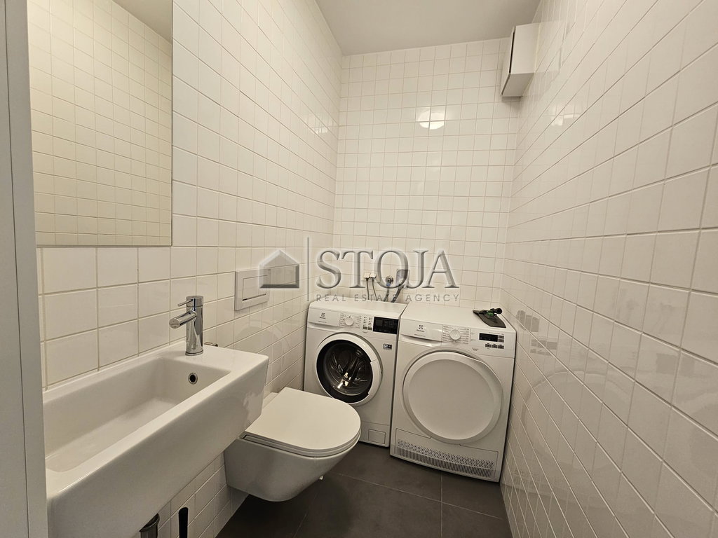 Stanovanje vključuje kuhinjo, opremljeno z vsemi potrebnimi aparati, vključno s pomivalnim in pralnim strojem, kar omogoča takojšnjo vselitev in udobno bivanje. Terasa nudi prijeten zunanji prostor za sprostitev.